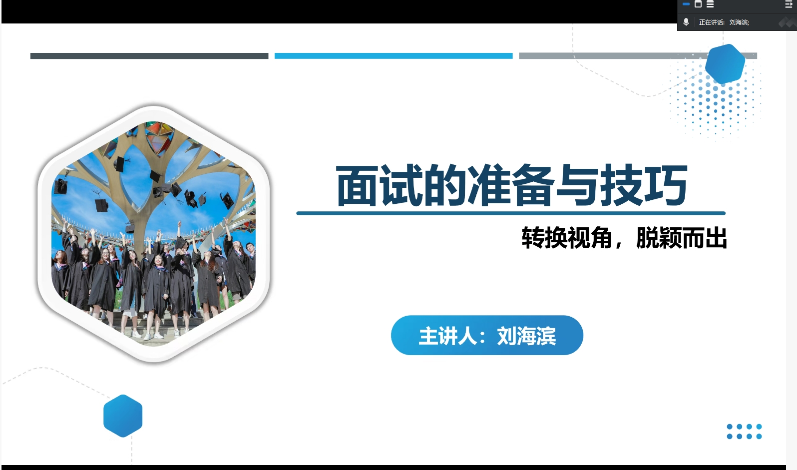 为提升毕业生求职竞争力,tyc41183太阳成集团于3月25日晚7点特邀东北师范大学就业创业教育研究院执行院长、高校毕业生就业协会生涯发展教育工作委员会学术委员会副主任刘海滨教授,通过腾讯会议平台开展"面试准备与技巧"专题指导讲座,为即将步入职场的2025届毕业生送上实用求职锦囊。